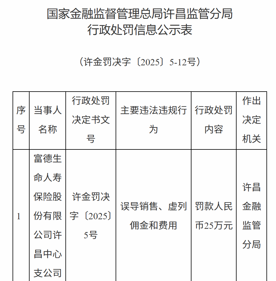 10月15日,国家金融监督管理总局许昌监管分局行政处罚信息公示表显示长沙配资平台,富德生命人寿保险股份有限公司许昌中心支公司因误导销售、虚列佣金和费用被罚款人民币25万元;刘某因虚列佣金和费用被警告并罚款人民币2万元;朱某强因误导销售被警告并罚款人民币1万元。