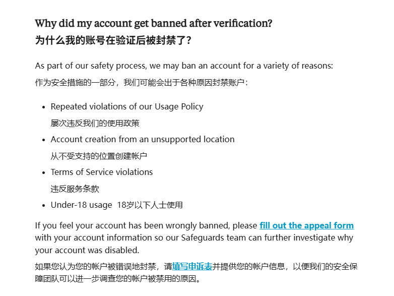 即便用户认证完成后,仍然可能被封号,因为涉及“不支持的地区”。